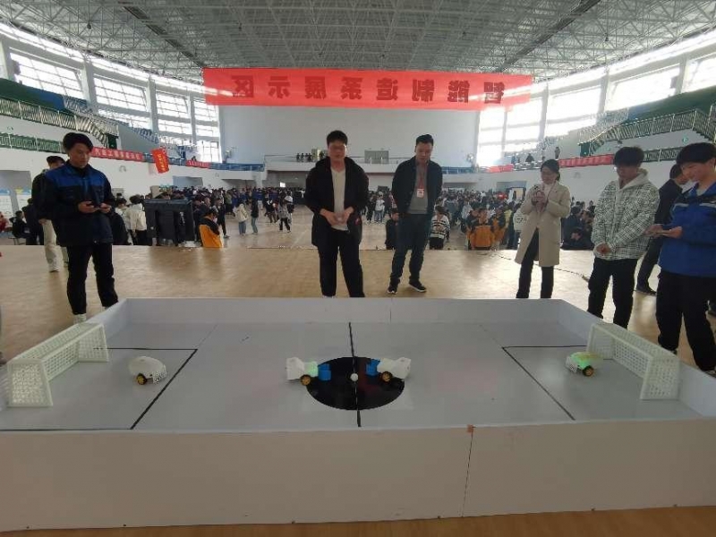 智能制造系机器人足球大赛正在激烈进行着,围观的师生都在紧张的观战。“这足球赛控制机器人的是我们的学生,足球赛的门框是我们系里3D打印出来的……”智能制造系副主任话语中带着满满的骄傲。