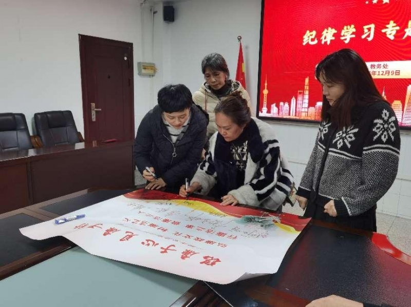 为深入开展清廉校园创建活动,进一步增强教务处党员干部职工廉洁自律意识,推进“清廉文化”深入人心,12月9日,教务处组织全体工作人员召开纪律学习专题会议暨清廉践诺签名活动。