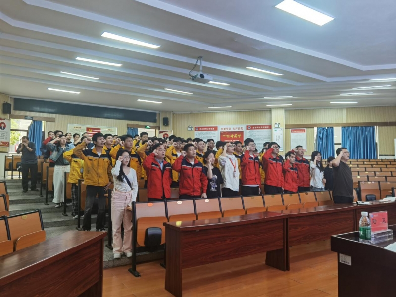 会议伊始,在指导教师代表何钻敏的带领下,参赛选手和指导老师们庄严宣誓,郑重承诺将全力以赴、赛出水平、为校争光。他们身姿挺拔、目光坚定,展现出了学院师生昂扬向上的精神风貌。